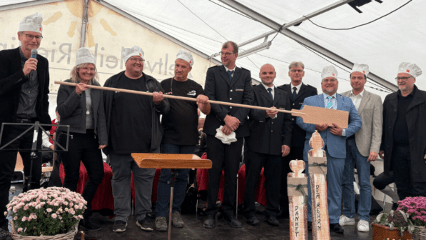 “Der Teig ist aufgegangen und das Brot ist gebacken”. Symbolisch überreichte Herr Künster die an der Planung und am Bau beteiligten Akteuren den Backofenschieber, der im neuen Dorfgemeinschaftshaus zum Einsatz kommen wird.